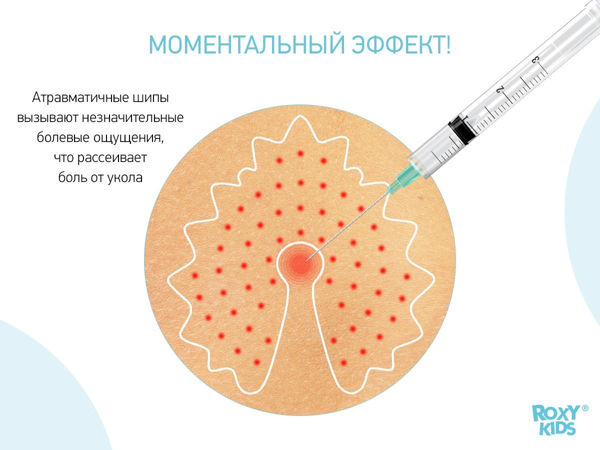 2. закругленные атравматичные шипы уменьшат боль от прокола кожи. Меньше боли — меньше страха и стресса у малыша при последующих процедурах