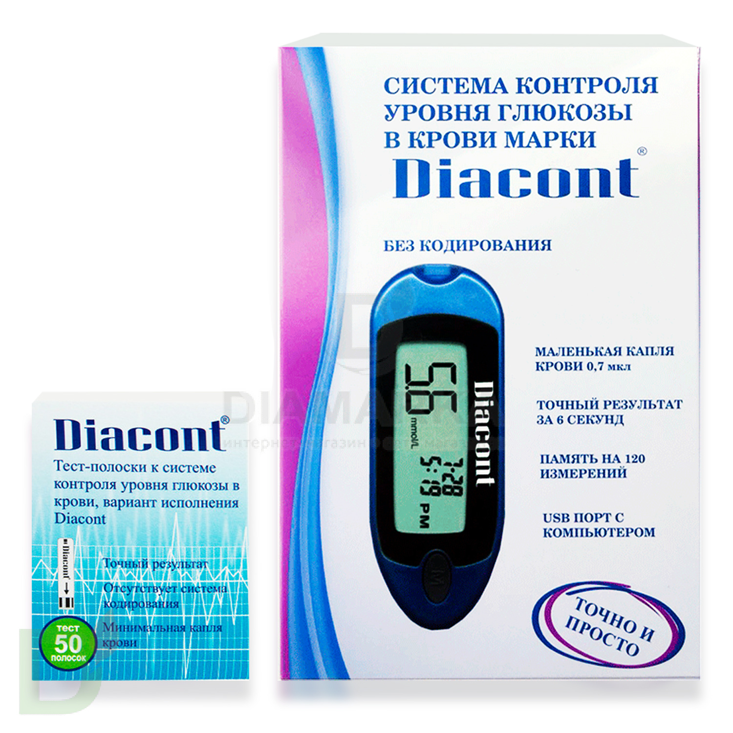 Частый и регулярный контроль - залог хорошей компенсации. Диаконт - бюджетные глюкометры и тест-полоски, а значит с ними вы можете измерять сахар столько раз на дню, сколько нужно! <div> <b> <br> </b> </div> <b>Глюкометр Диаконт Мини - это:</b> <ul> <li>точность</li> <li> компактность</li> <li>доступные расходные материалы (тест-полоски)</li> <li> простота использования</li> <li> современный дизайн</li> <li> отсутствие кодирования</li> <li> 250 результатов измерений - лимит памяти прибора</li> <li> малая капля для проведения анализа - всего 0,7 мкл</li> <li> предупреждение гипо- и гипергликемий</li> </ul> <h3>Что входит в наше предложение</h3> <ol> <li>1 глюкометр Диаконт Мини за 1200 рублей</li> <li> батарейка для глюкометра</li> <li> 50 тест-полосок Диаконт (1 пачка) за 660 рублей</li> </ol> <div> <strong>Производитель:</strong> ОК Биотек (Тайвань/Россия) <br> </div> <ol> </ol>