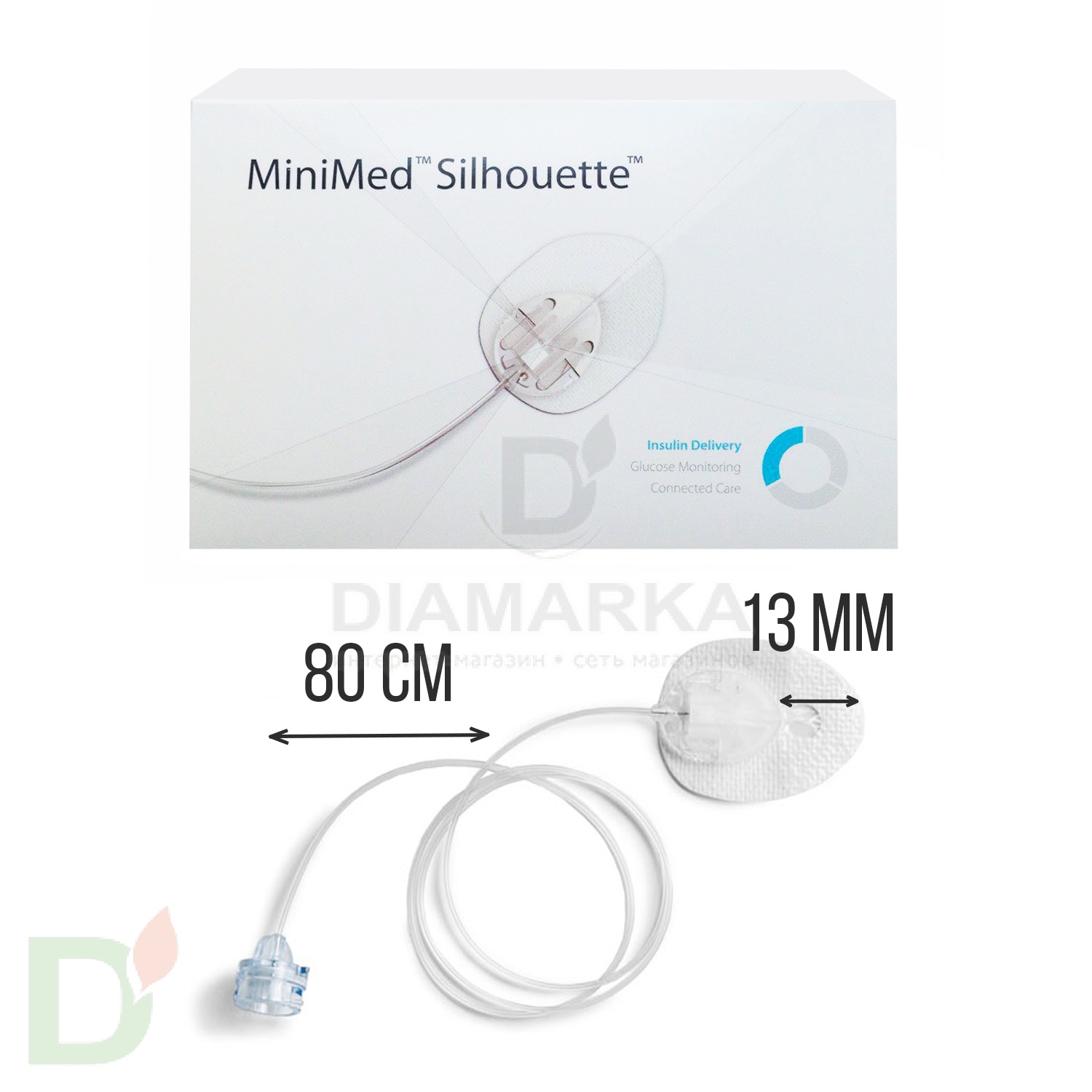 <h2>Инфузионный набор для помп компании Medtronic</h2> Устройство для инфузии предназначено для использования вместе с инсулиновыми помпами производства компании Медтроник: MMT 712/522/722/754/640/720/740/780<br> <h2>Особенности наборов Silhouette</h2> <ul> <li>мягкая тефлоновая канюля</li> <li> установка под острым углом (20-40 градусов)</li> <li> отсоединение в месте крепления к коже</li> </ul> <h2>Кому подходят Силуэты</h2> Инфузионные наборы Силуэт универсальны и подходят для всех категорий пациентов. Они особенно хороши для использования во время беременности (с конца 2 триместра).<br> <br> <ul> <li>Длина тефлоновой канюли: 13 мм</li> <li> Длина катетера: 80 см</li> </ul> <h2>Комплектация одной упаковки</h2> <ul> <li>10 инфузионных наборов и индивидуальной упаковке</li> <li> 2 заглушки</li> </ul> <br> <div> Срок годности: указан на упаковке </div> <div> <br> </div> <div> Производитель: Medtroniс – США </div> <div> <br> </div> <div> <br> </div> <div> <b>*Стоимость указана за 1 шт. (на 3 дня)</b><br> </div> <h3>Инфузионные системы, резервуары, сенсоры, инъекционные порты - одноразовое стерильное медицинское изделие, гарантия на них не предусмотрена. Срок годности инфузионных наборов для помпы MiniMed - 3 года с даты производства. Срок службы - 2-3 дня.</h3>