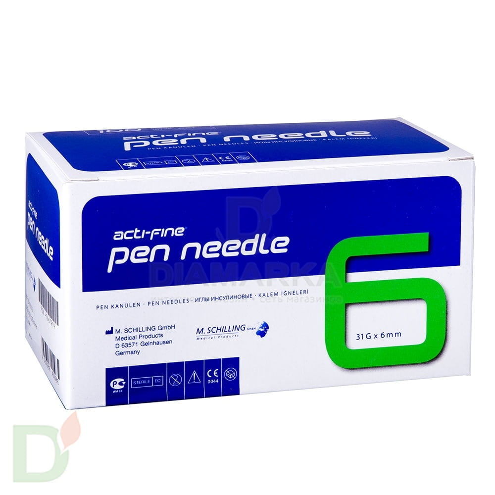 Иглы Акти-Файн (Acti-Fine) 31G, длина 6 мм, 100 штук, для шприц ручек