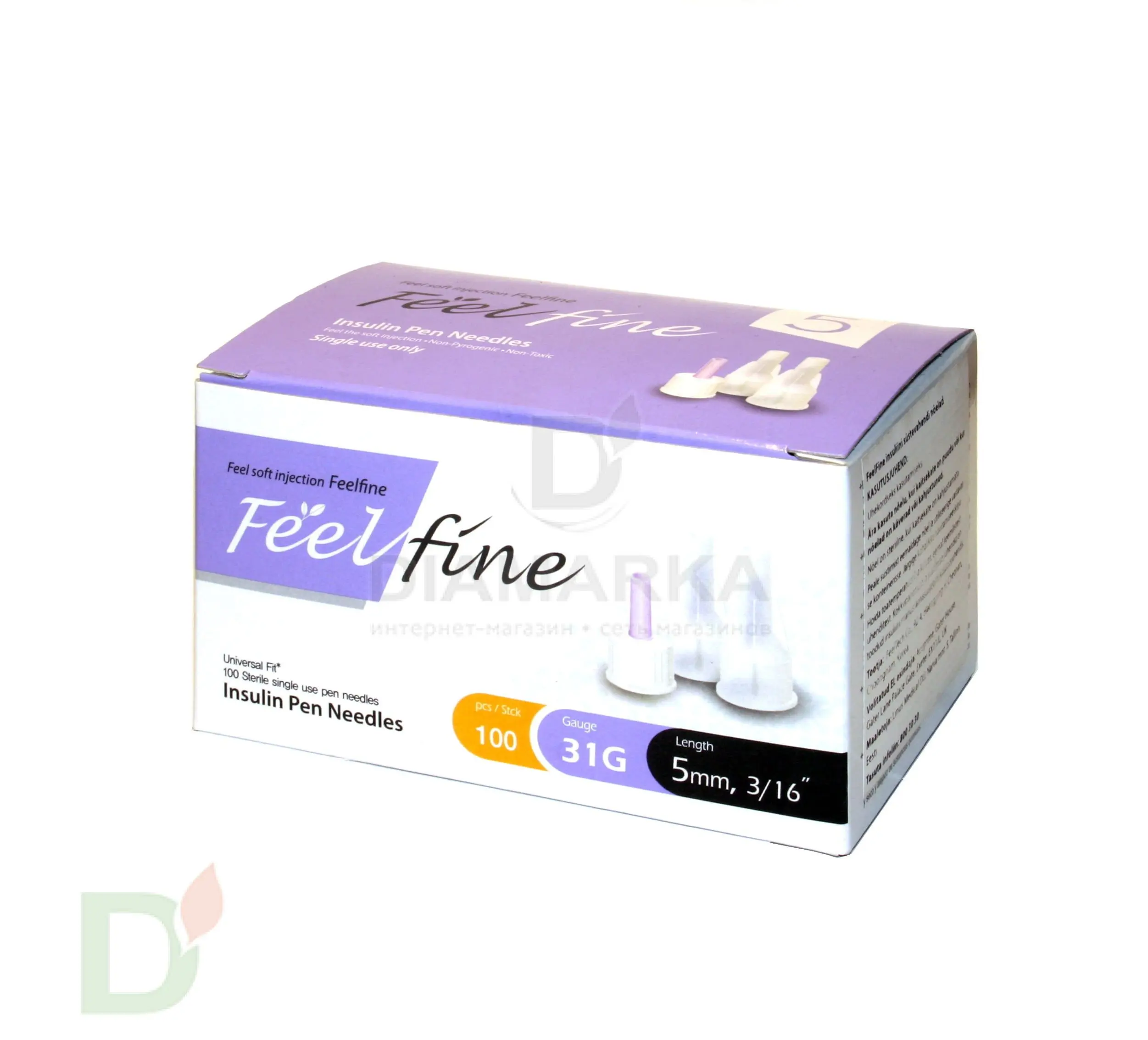 Иглы ФилФайн (FeelFine) 31G, длина 6 мм, 100 штук, для шприц ручек