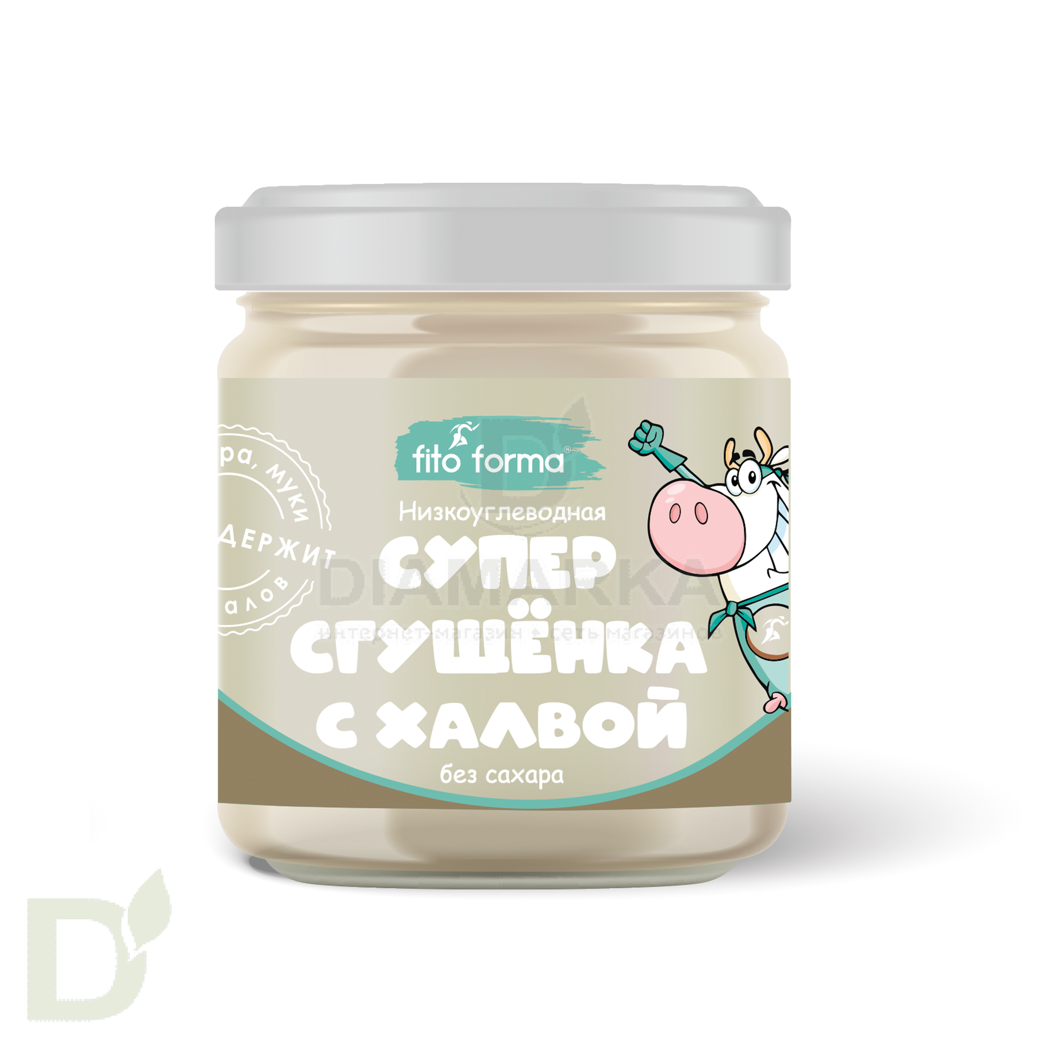 <h2>Сгущенка для тех, кто на диете</h2> Сгущенка - это лакомство из детства. С блинчиками, сырниками, даже хлебом... да что уж там, многие ели ее ложкой прямо из банки! А сладость такая, что челюсть сводит...<br> <br> Уже во взрослом возрасте мы понимаем, что сгущенка - не самый полезный продукт. В ней много сахара, жиров и лишних калорий. Но отказаться от любимого лакомства непросто.<br> <br> Сгущенка Fito Forma - это десерт, который смело можно отнести к классу "ПП-продукты"!<br> <br> <h3>Чем хороша сгущенка Fito Forma?</h3> <ul> <li>в ней в среднем в 5 раз меньше калорий</li> <li> в 6 раз меньше углеводов</li> <li> в составе нет сахара</li> <li> натуральный, естественный, в меру сладкий вкус</li> <li> безопасный состав</li> </ul> <h3>Как и с чем съесть сгущенку?</h3> Уверены, вы и сами знаете как расправиться с этим продуктом. Но пару идей вам все же подкинем ;)<br> <ol> <li>в качестве намазки на тосты, хлебцы, печеньки, блинчики, оладьи или сырники</li> <li> с запеканкой или кашей</li> <li> как вкусоароматический компонент для крема при приготовлении домашних десертов и тортов</li> <li> в сгущенку вкусно макать дольки яблок, персиков, банана или других фруктов</li> <li> чайная ложка такой сгущенки в кофе сделает напиток вкуснее!</li> </ol> <h4>Пищевая и энергетическая ценность на 100 грамм пасты</h4> усваиваемые ккал 68,6<br> 0,6 жиров<br> 9,8 углеводов<br> 6 белков<br> 40 грамм пищевых волокон<br> <br> Масса нетто: 300 грамм<br> <h4>Состав крем-пасты Сгущенка-Халва</h4> вода очищенная, изомальтоолигосахарид, сухое обезжиренное молоко, семена подсолнечника, натуральный подсластитель эритрит, натуральный ароматизатор, натуральный пищевой консервант низин.